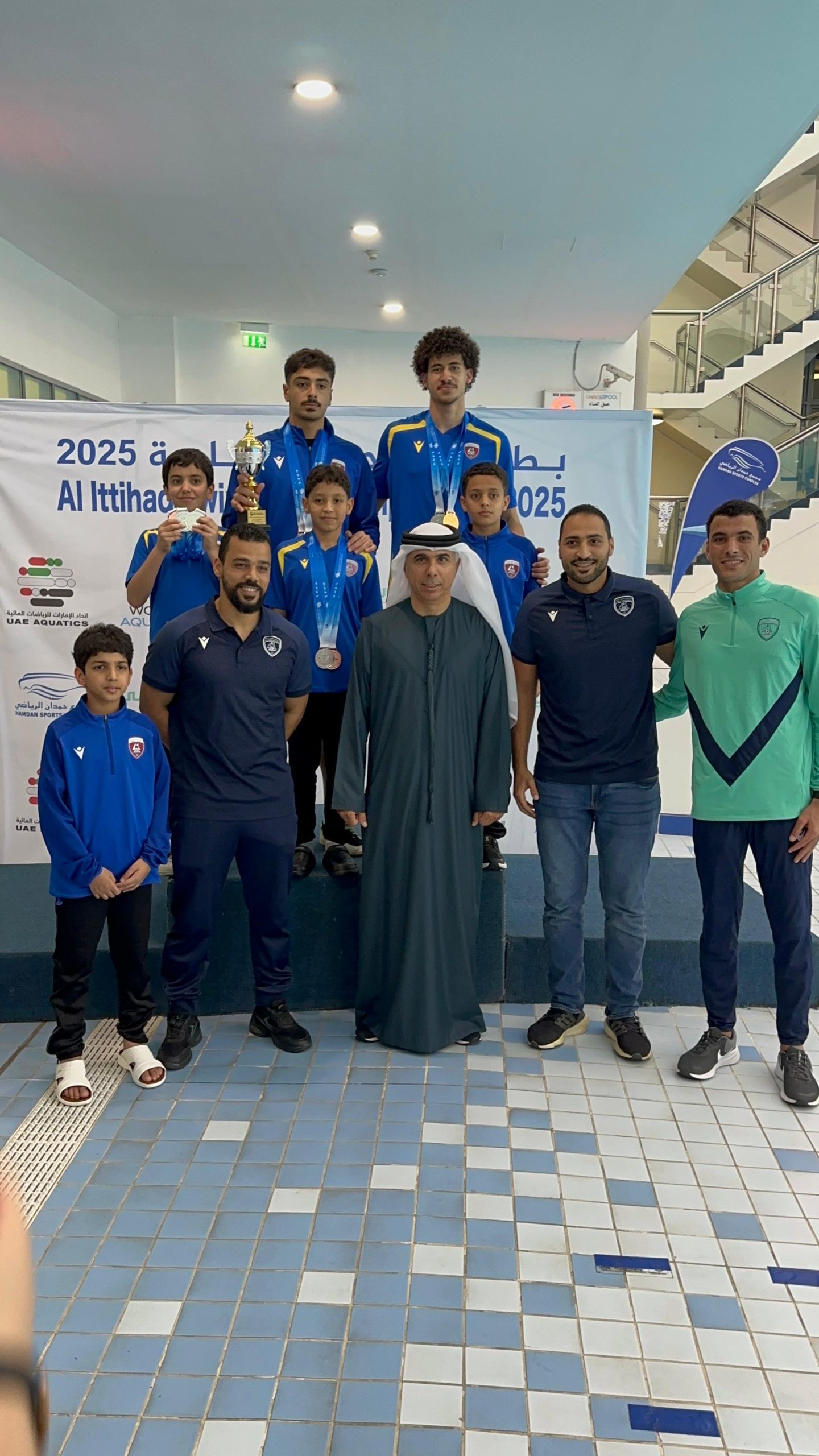 حقق فريق للسباحة 9 ميداليات ملونة (ذهبيتان، 4 فضيات، 3 بزونزيات) في بطولة الاتحاد التي احتضنها مجمع حمدت الرياضي بدبي، يومي 27 و28 ديسمبر 2025. ظفر بالذهبيتين، حمد الشحي (50…