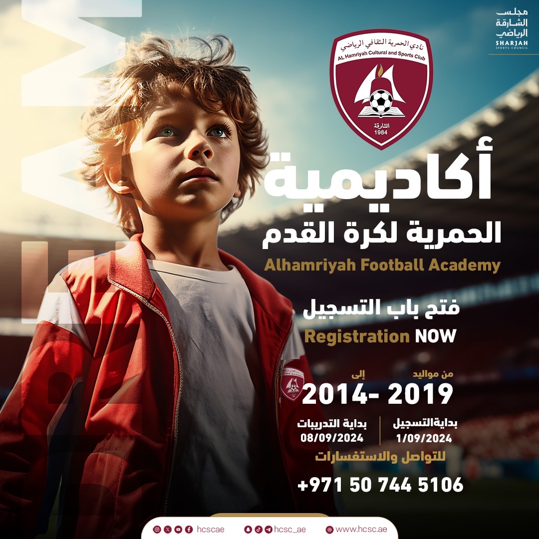 افتتح نادي الحمرية الثقافي الرياضي، رسميا، اليوم الأحد 1 سبتمبر 2024، باب التسجيل في أكاديمية كرة القدم للموسم الرياضي الجديد 2025/2024. وتم تحديد التسجيل للفئة العمرية مواليد سنوات من 2014…